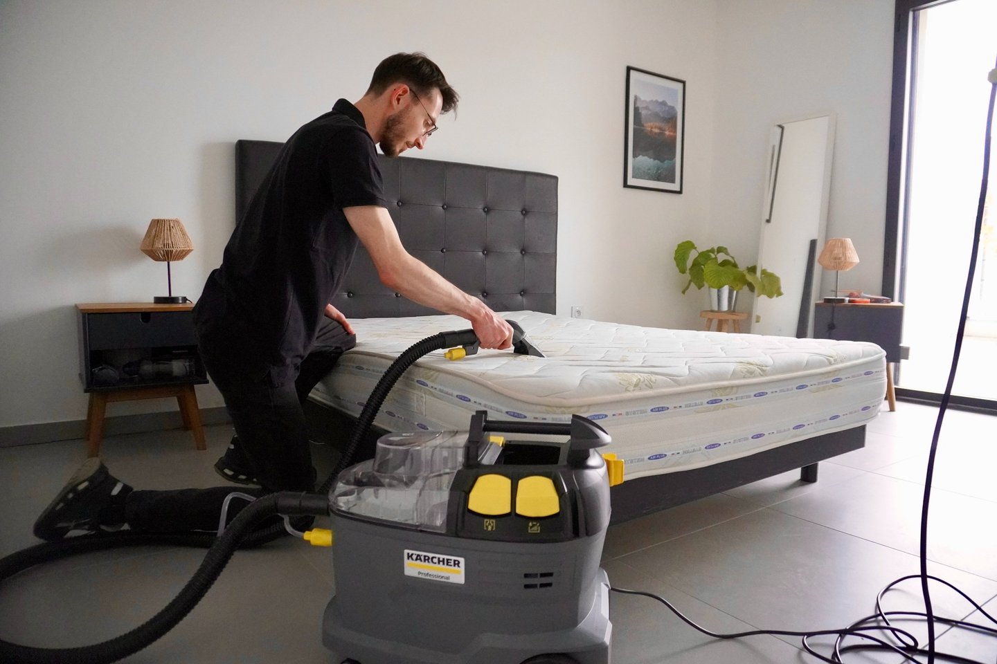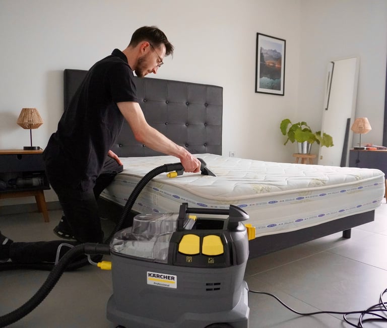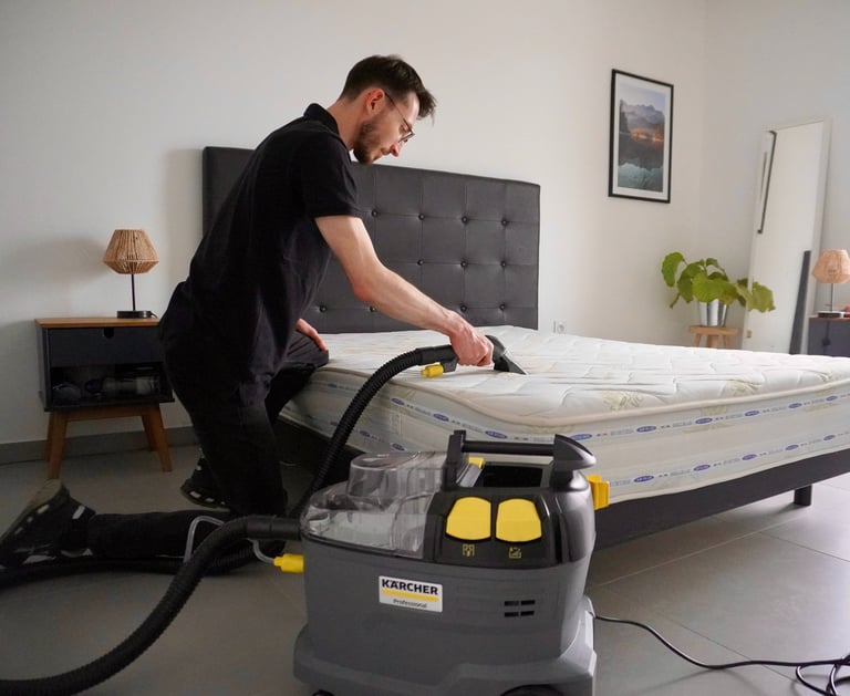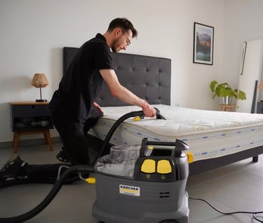 Nous intervenons avec du matériel professionnel et des produits adaptés aux matelas, pour une désinfection complète et un résultat impeccable.